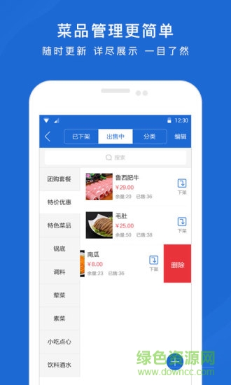 火锅网商家端app是一款好用的餐饮管理手机软件,此版适合商家用户使用,支持在手机上对门店、菜品进行管理,可以及时处理订单,欢迎喜爱的朋友到绿色资源网下载体验!