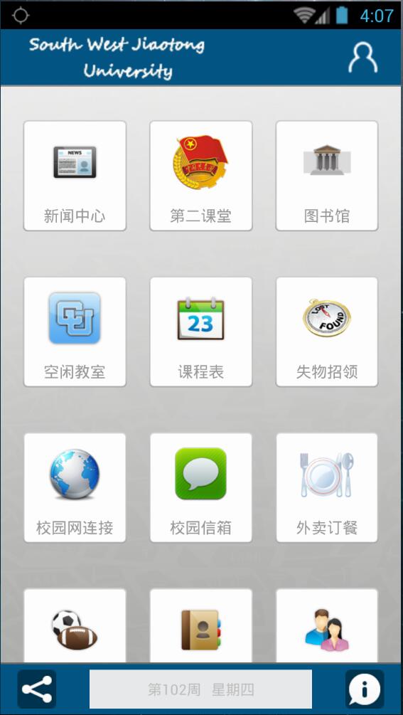 7、团委第二课堂。第二课堂是校团委目前的工作重点,在手机端及时获取团委二课堂的开课、选课及成绩信息。
