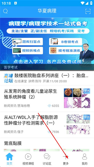 1、打开华夏病理APP,点击底部更多。