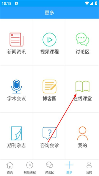 2、在更多页面,点击在线课堂。