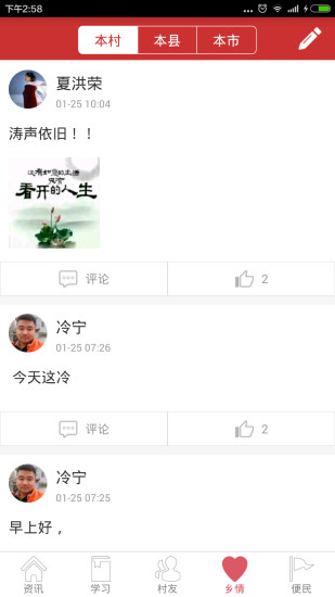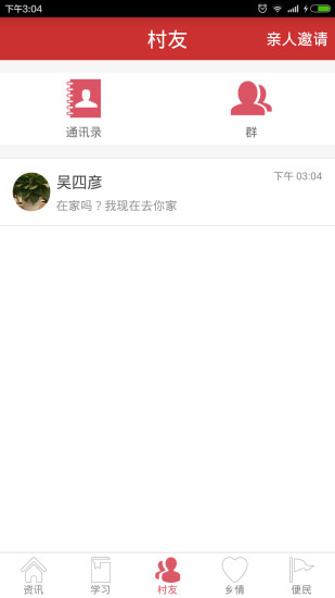 村民交流平台:囊括全村村民,形成村级社区,提供村民之间即时通讯、话题讨论和互相帮助渠道