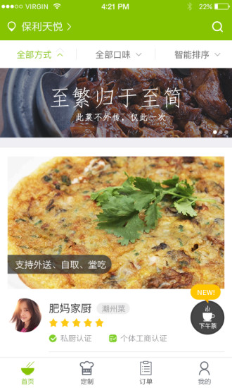 “住家饭”是全国率先实现私厨定制的订餐平台之一,一个聚拢区域私厨、服务高质白领的O2O平台。