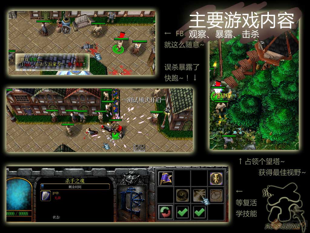 暗杀地图是一张非常好玩的魔兽rpg地图,你可以在这里与小伙伴进行各类心机,你需要在村民中寻找到杀手来进行暗杀,游戏有着许多的职业让游戏增加了很多趣味,是一款非常适合开黑娱乐的地图