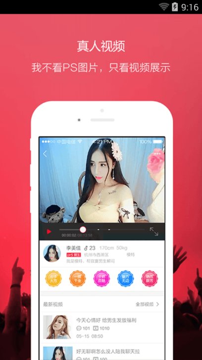 【视频认证】用户注册时就要提交短视频认证,使用中用户也只能通过拍摄短视频展示自己,所有视频均经过严格审核。看照片交友?那是上个世纪的事了,我不想看PS照片,我只看视频介绍。