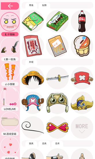 超可爱的二次元相机贴纸,包含海量卡通人物的发型、服饰等素材,还有各种萌翻天的表情包赶紧下载来一发吧!