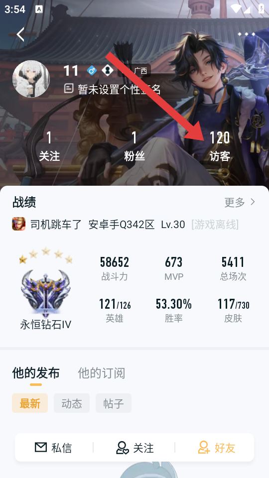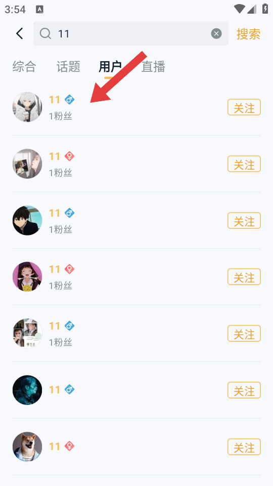 1、打开王者营地APP,需要搜索你需要访问的目标用户如示例中搜索11,进入其个人主页。