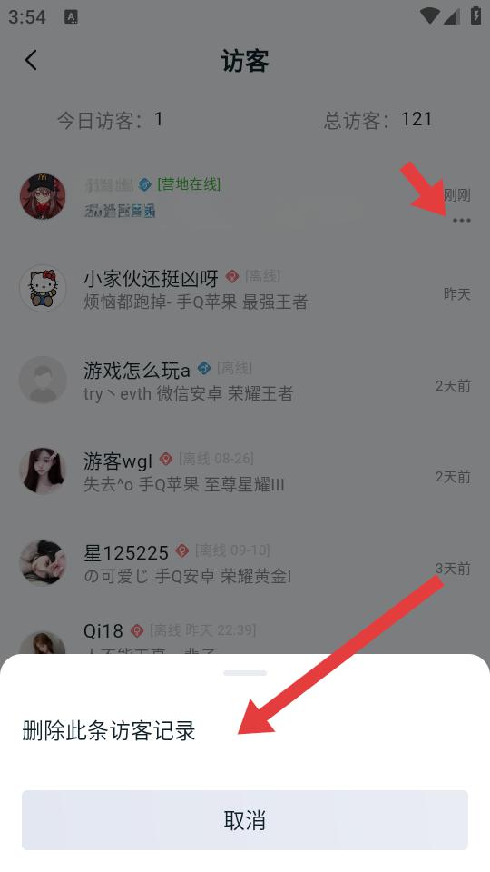 3、找到自己的访问记录,点击记录右侧的更多按钮,选择删除此条访客记录,即可清除访问痕迹。