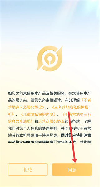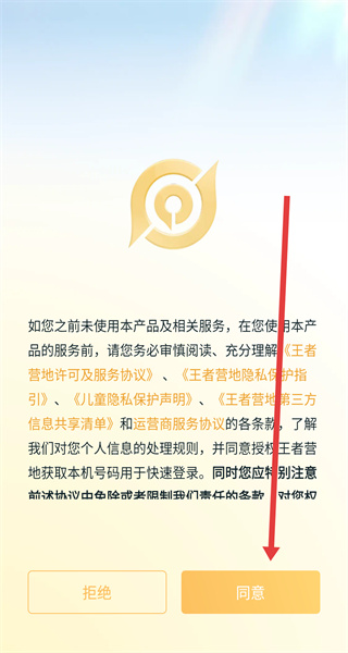 1、在打开王者营地App后,可以通过点击同意按钮,进入使用。