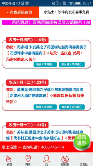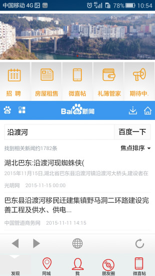 功能:整合巴东沿渡河各便民信息,招聘、售房、租房、喜事喜帖、及特色服务“礼薄管家”