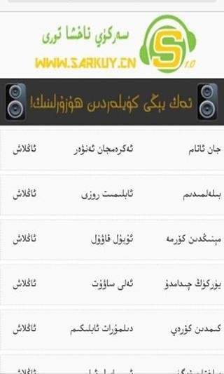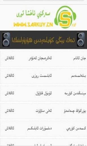 sarkuy是sarkuy.cn萨尔酷艺音乐网的手机客户端,sarkuy是一个音乐门户网站客户端,可以在线听歌曲下载歌曲,更省流量,而且支持维吾尔语,欢迎下载使用。