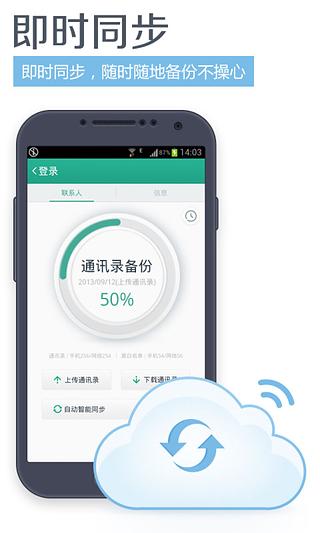 客户端同步方法:下载安装后登录客户端,进入备份模块,点击合并通讯录或上传通讯录即可。