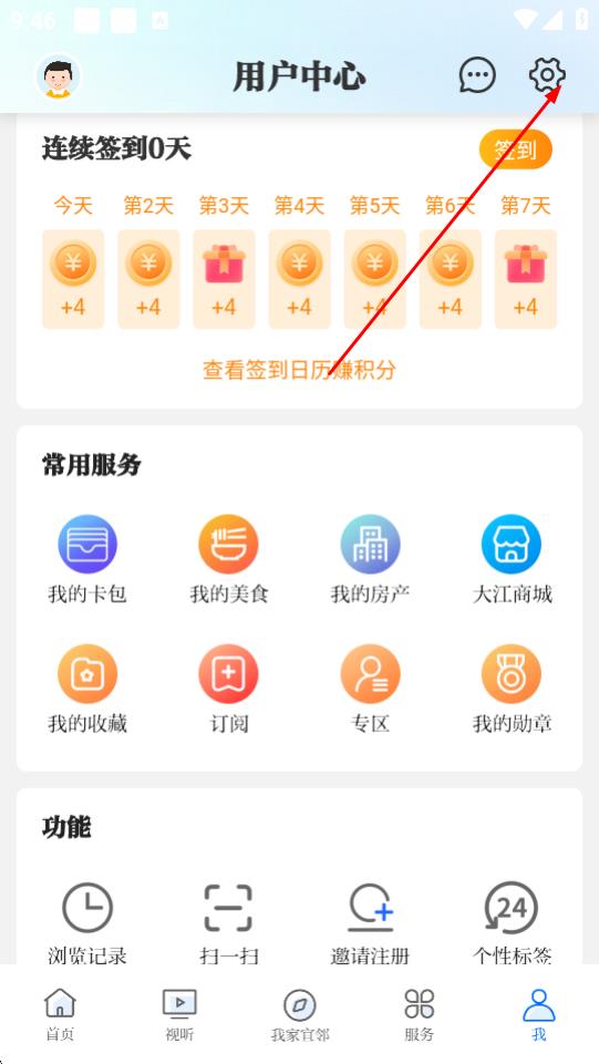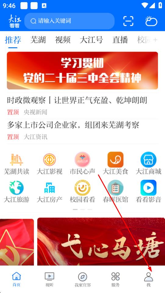 1、打开大江看看App,点击底部导航栏右下角我选项。