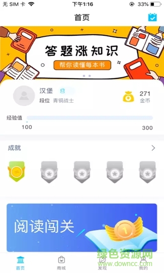 K12学生在线下阅读书籍后,可以通过在APP中选择读过的书进行答题闯关,闯关通过将获系统赠送金币,金币可以用于到商城兑换书籍。