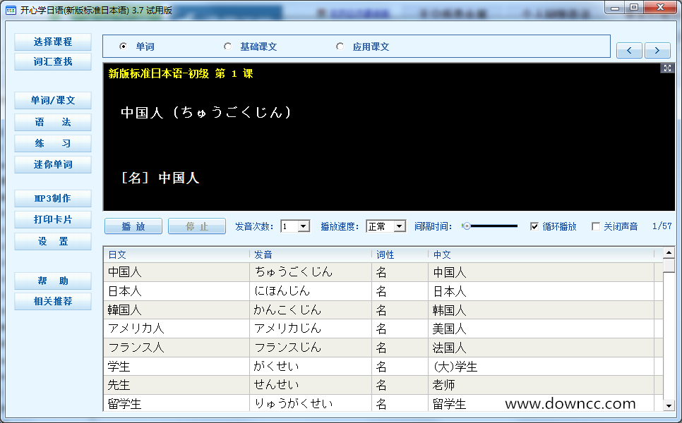 2.本软件与《新版标准日本语初级》教材同步