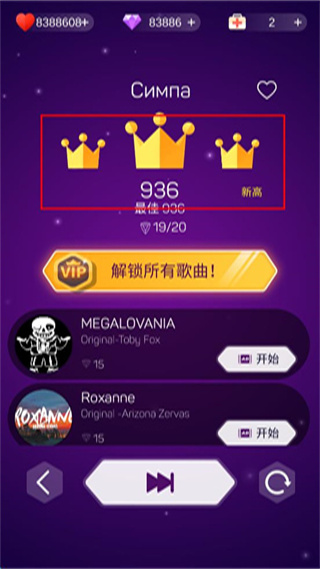 4、完成歌曲演奏后查看结算界面,获取皇冠评级和对应奖励。