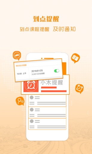 课程提醒:到点课程自动提醒 。通过消息推送,本地闹钟、短信提醒等方式,及时通知教练到点课程,帮助教练把控教学安排,提高教学质量。