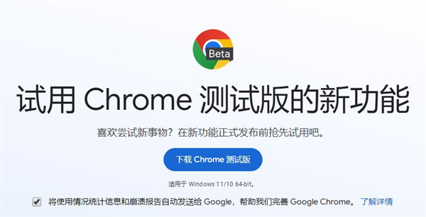 又称为“chrome beta”版,是用来内测新功能的版本,通常适用于喜欢尝鲜的用户,会不断更新一些新测试的功能,这些功能都是很新鲜的,但是因为处于测试阶段,可能会出现不稳定的现象。