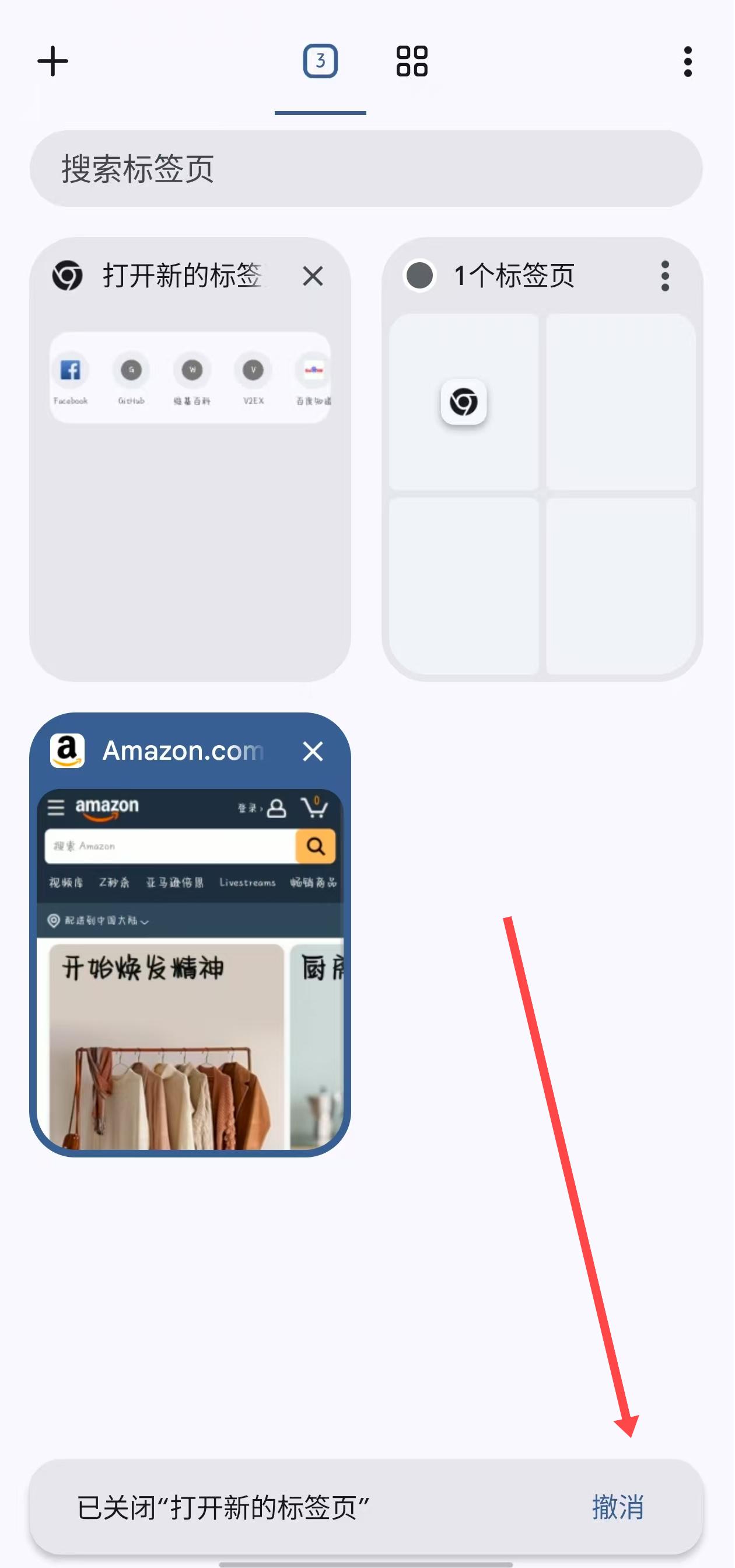 1、打开浏览器,若误关了打开新的标签页,看到页面下方已关闭打开新的标签页提示,可点击撤销,恢复该标签页。