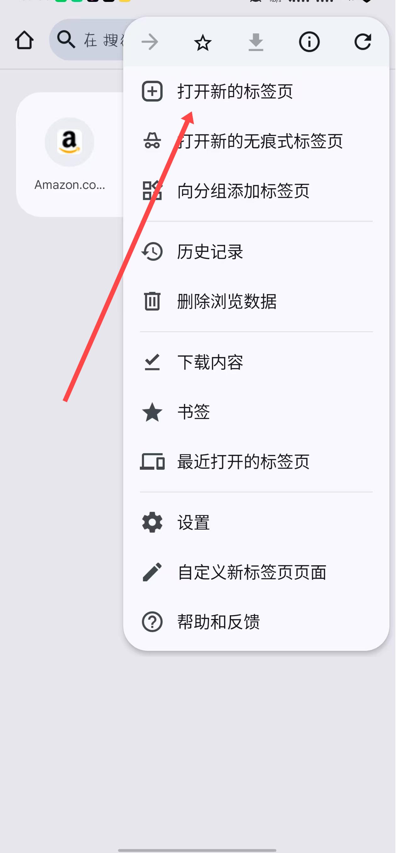 2、若要打开新标签页,点击浏览器菜单,在弹出的选项中,选择打开新的标签页,即可开启一个新的标签页进行浏览。