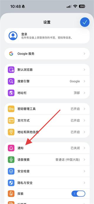 4、在通知设置页面,找到Chrome提示,将其开关开启,即可开启谷歌浏览器的通知功能。