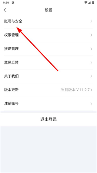 2、在设置页面,点击账号与安全选项,进入账号与安全页面。