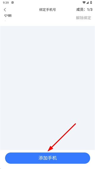 4、在绑定手机号页面,点击添加手机按钮,按照提示完成手机号添加绑定操作。