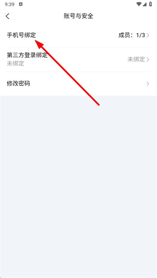 3、在账号与安全页面,点击手机号绑定选项,进入绑定手机号页面。