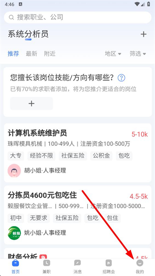 1、在俊才网app首页点击底部我的选项,进入个人页面。