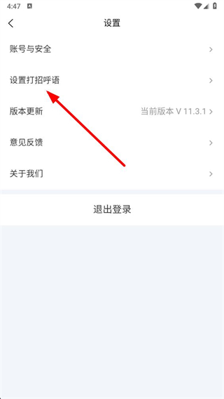 3、在设置页面点击设置打招呼语选项,进入设置招呼语页面。