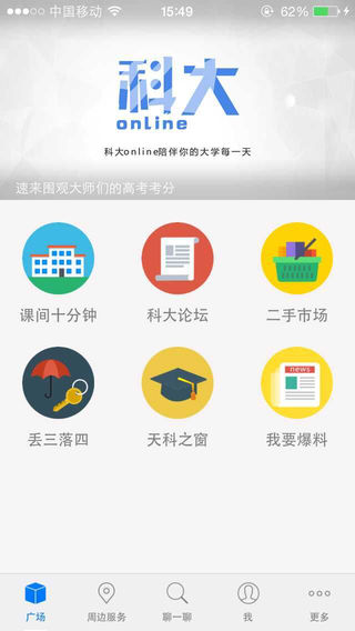 科大online app是专门为天津科技大学的学生打造的一款综合性的校园服务应用,提供了课间十分钟、二手市场、科大论坛、丢三落四、天科之窗以及我要爆料等板块,为广大的师生提供一个互动交流以及移动服务平台,欢迎需要的朋友来绿色资源网下载体验吧!