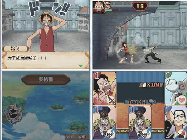游戏采用3D画面来刻画战斗场面,但众所周知,格斗类游戏很不适合采用3D画面来刻画,加上DS机能本身的限制,据齿随处可见。而人物动作也比较僵硬,而且一些局部特写,甚至必杀技的动画都有很大的瑕疵。但是整体场景刻画的还是比较舒服,地图背景也原汁原味的搬来的动漫的场景。总的看来,DS平台上来做3D格斗游戏画面确实不是个好选择。