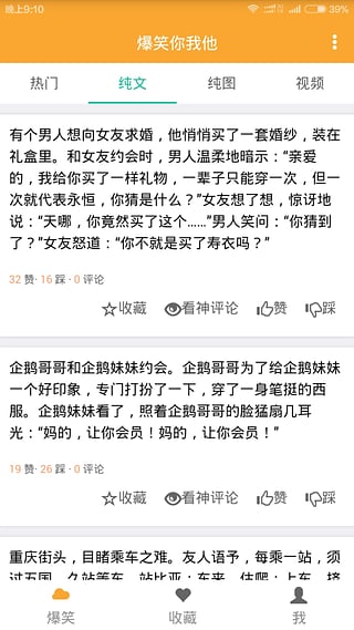 爆笑你我他APP每天都会为大家更新搞笑的段子、图片以及视频,软件的内容质量非常高,帮助你放松自己的同时也能给你带来欢笑,板块分的挺细致内容更新也快,让大家每天都有一个好心情。