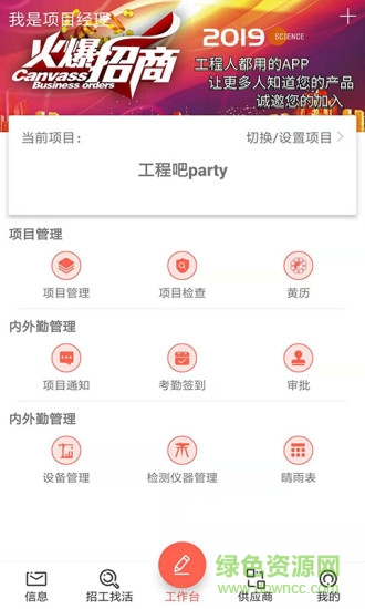工程吧party软件是一款非常好用的工程管理app,支持在线手机上进行招工和求职,可以进行项目、内勤、外勤的管理,建筑工程项目的相关人员还可以在线进行交流互动,欢迎感兴趣的朋友到绿色资源网下载使用!