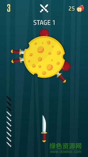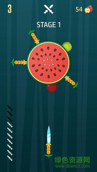 刀片射击安卓手机版是一款非常好玩的休闲射击游戏,游戏玩法有点类似于见缝插针,每一关里面都有一个大水果,然后水果外面会有其他的道具和水果,大水果盘还会不停的转动,玩家需要将刀找准时机射击到空白处,欢迎感兴趣的朋友到绿色资源网下载试玩!