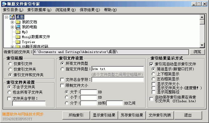 9、索引和搜索的结果可以保存为网页格式(简洁式、左右框架式和上下框架式),便于浏览和网页查找;
