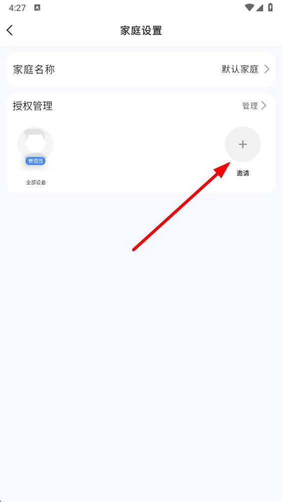 4、在家庭设置页面,点击授权管理区域的邀请按钮。