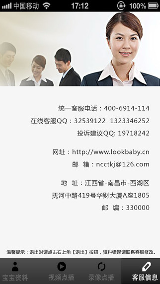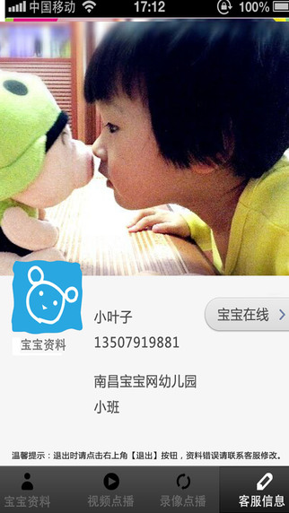 3.视频直播,实时观看:一段宝宝学唱新歌的趣味童声、一场宝宝们追逐玩乐的开心时光.....宝宝网视频直播,让家长实时看到宝宝在园的学习生活,绝不错过宝宝成长中的每一个精彩瞬间不在宝宝身边,却看着宝宝成长;天南地北,犹如面对,再无时空界限。