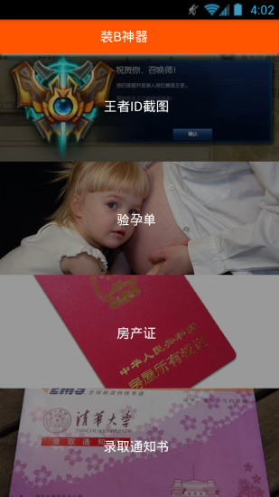 装b神器最新版2017是一款专为安卓用户打造的手机装逼app应用,无论是结婚证还是房产说明,无论是逗好友还是微商销售,这款软件都能起到很大的作用,欢迎大家在绿色资源网下载体验。