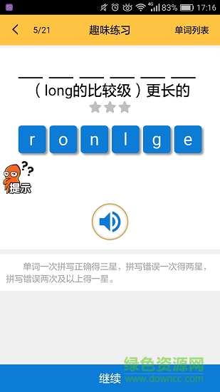 单词记忆游戏化,游戏界面精美,趣味十足,记忆效果翻倍