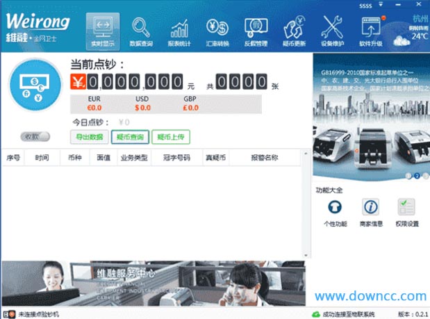 维融金网卫士客户端是一个金融设备辅助工具,该软件界面简洁,功能强大,支持数据查询、汇率转换、报表统计、假币更新等功能,还支持云数据计算,需要的朋友欢迎在绿色资源网下载使用!