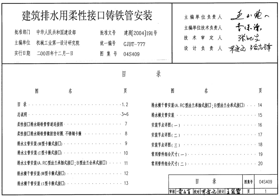 04s409图集由机械工业第一设计研究院主编,介绍了建筑排水用柔性接口铸铁管安装,适用于工业工程行业,本图集文pdf格式的,高清无水印,方便大家随时查看相关资料。