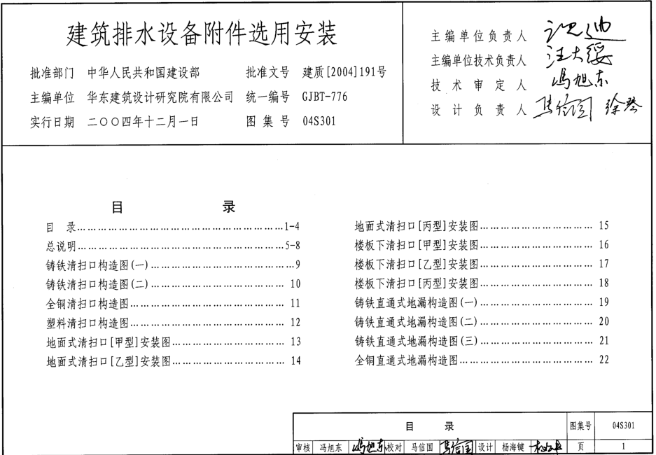 04s301图集由华东建筑设计研究院主编,代替原来的92S220图集,国标04s301介绍了一般工业建筑排水设备附件的选用与安装,非常适合施工人员参考本图集安装,这本资料是pdf格式的,大家可以随时下载查阅。