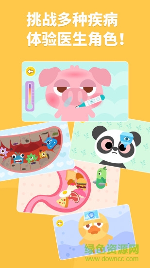 2、新增多种病患场景,增添疾病医疗知识解说,让宝宝学习了解更多医护常识