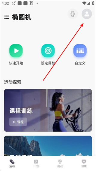 1、在运动秀app首页,点击右上角的个人头像图标,进入我的页面。