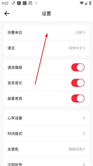 3、在设置页面点击测量单位选项,弹出单位选择弹窗。