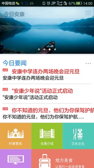 今日安康app是由安康新闻网推出的综合性的地方新闻客户端,主打安康本地的新闻资讯,集成汉水文化、地方美食、旅游资讯等内容的移动终端综合信息平台,旨在为用户提供新闻、生活、文化、娱乐、美食等全方位信息资讯和贴心服务,欢迎需要的朋友来绿色资源网下载体验吧!