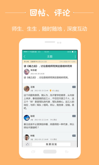回复、评论主题:基于主题活动,师生、生生随时随处深度互动,支持文本、拍照、录音多种内容录入方式