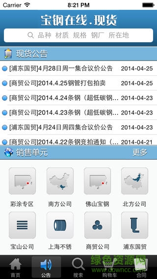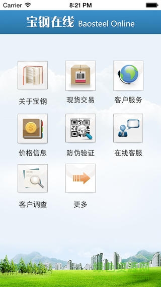 宝钢在线移动客户端是宝钢奉献给广大钢材用户的自助终端。通过简洁的手机界面,您可以随时掌握宝钢价格行情,选购钢材资源,还可跟踪合同进程,管理账户资金。技术让生活更轻松,友爱的宝钢与您共享移动商务的便利。