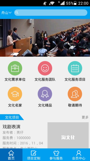 淘文化app是一款文化服务类手机软件,主要含有各种文化项目资源,用户可以在这里进行展示,也可以查看表演,同时可以进行项目的投资,喜爱的朋友赶快到绿色资源网下载使用吧!