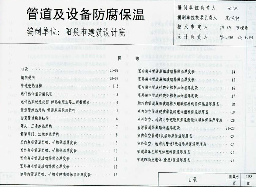 05S8管道及设备防腐保温图集是一份阳泉设计研究院主编的图集,本图集管道热质结构、电伴热保温安装说明等信息,图集内容丰富,需要的赶紧到绿色资源网下载吧。